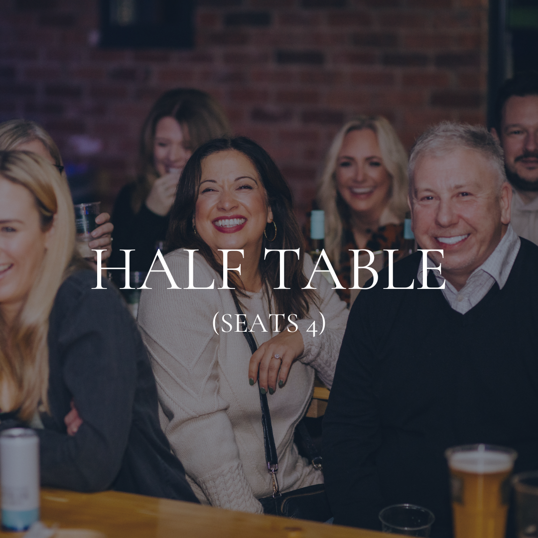 Seats up to 4 people. Please note these tables will be shared with other parties of 4 people. Access to bar, and food options.