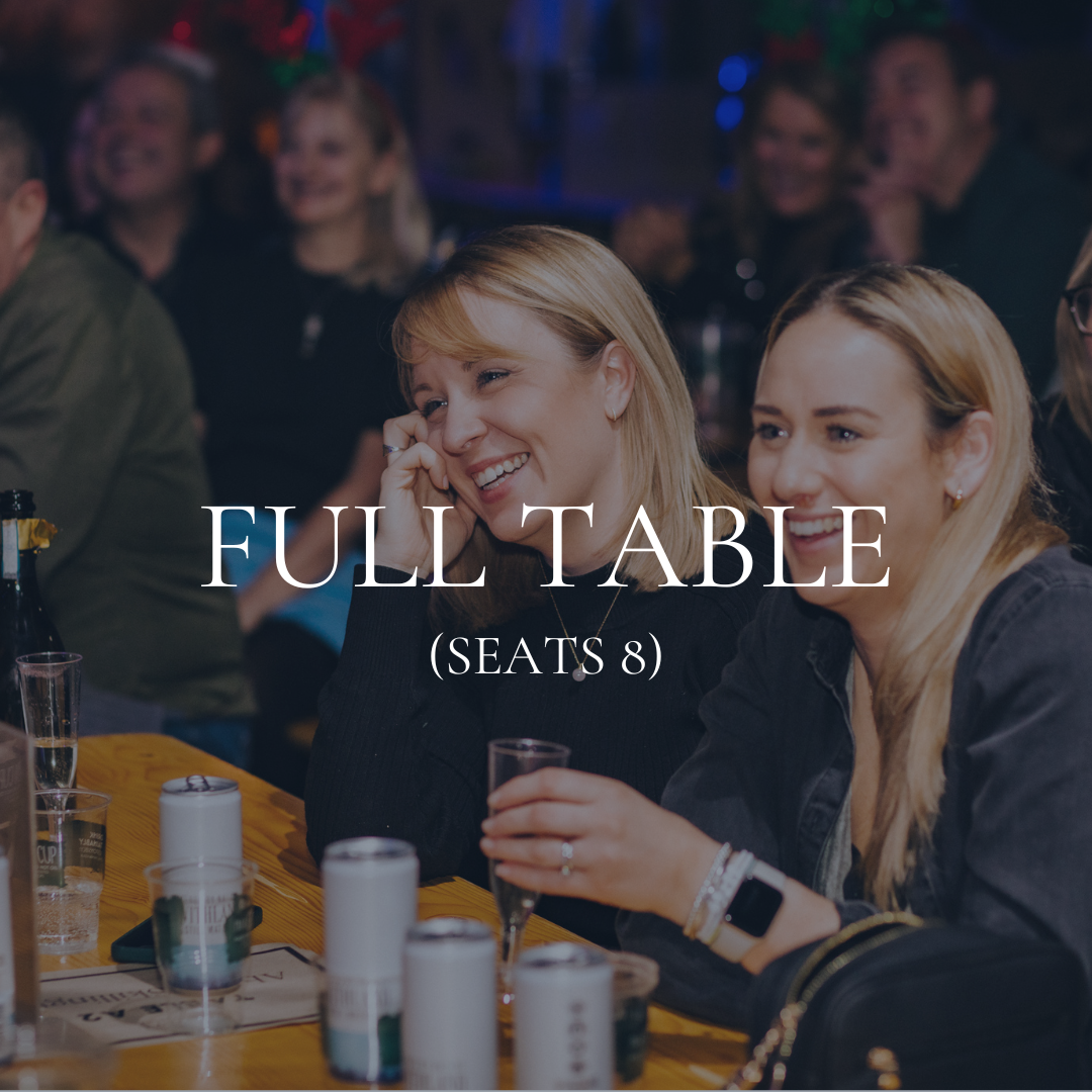 Seats up to 8 people. Guaranteed front row, plus two bottles of Prosecco on the table. Limited availability! Access to bar for additonal drinks and food options.